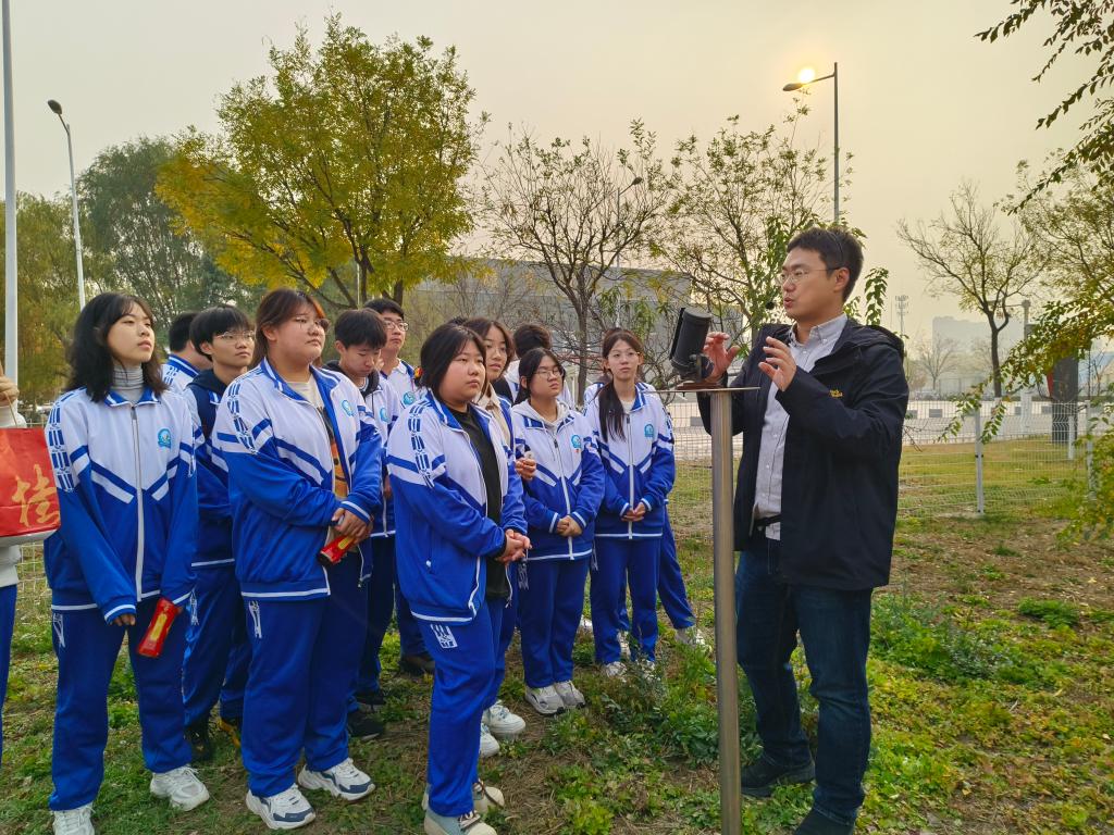 在气象园,张寒老师为同学们逐一讲解了雨量器、百叶箱、风速计等气象仪器的工作原理和使用方法,并与高考地理试题相结合,耐心地为同学们解释了如何通过风向标来判断风向。同学们近距离观察了各种气象仪器,并与所学课本知识相结合,进一步培养了同学们的观察能力和动手实践能力。