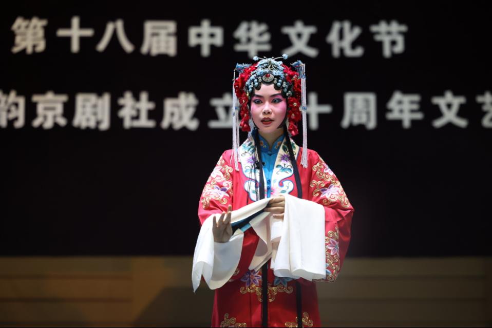 锣鼓声起,京剧、河北梆子、黄梅戏、昆曲、岔曲、相声等优秀剧目悉数登场,观众们在精彩纷呈的戏曲世界中,感受到国粹京剧的博大精深,饱览了地方戏曲的独特魅力。在京剧短打武戏剧目《恶虎村》中,国韵京剧社社员温锦杉灵活运用“飞天十三响”“飞脚”“踢大带”等技巧表现了人物夜入恶虎村的场面,身段气质极具张力;在京剧《空城计》选段《我正在城楼观山景》中,社员李沛钊饰演的诸葛孔明坐镇空城、气定神闲,带领观众们走进了三国这个充满智慧与谋略的世界;在昆曲《牡丹亭》中,社员李昕馨通过《游园》中的一句“不到园林,怎知春色如许”唱出了杜丽娘对爱情的憧憬和向往,唱腔婉转细腻,表演优美动人;在地方戏优秀剧目展演中,黄梅戏淳朴流畅、河北梆子豪放粗犷……两个小时的曲艺盛宴让传统文化走进观众心中,撬动了隐藏在年轻一代心中最深刻的文化家国情怀。