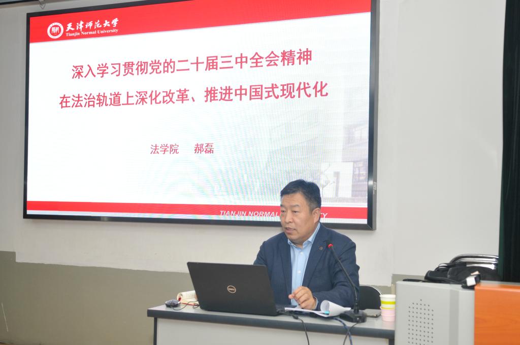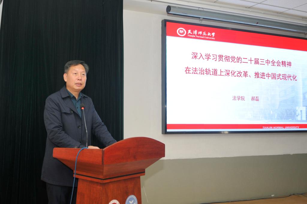 郝磊以《在法治轨道上深化改革 推进中国式现代化》为题,分别从坚持全面依法治国,在法治轨道上深化改革、推进中国式现代化;完善中国特色社会主义法治体系,深化法治领域自身改革;将法治贯穿于改革各领域全过程,确保改革与法治相统一等三方面全面讲解了党的二十届三中全会精神和习近平总书记关于进一步全面深化改革的重要论述。法治是中国式现代化的重要保障,郝磊在宣讲会重点阐述了改革和法治的关系,两者如同鸟之两翼、车之两轮,必须坚持依法治国,在法治轨道上深化改革、推进中国式现代化,做到改革和法治相统一,重大改革于法有据、及时把改革成果上升为法律制度。