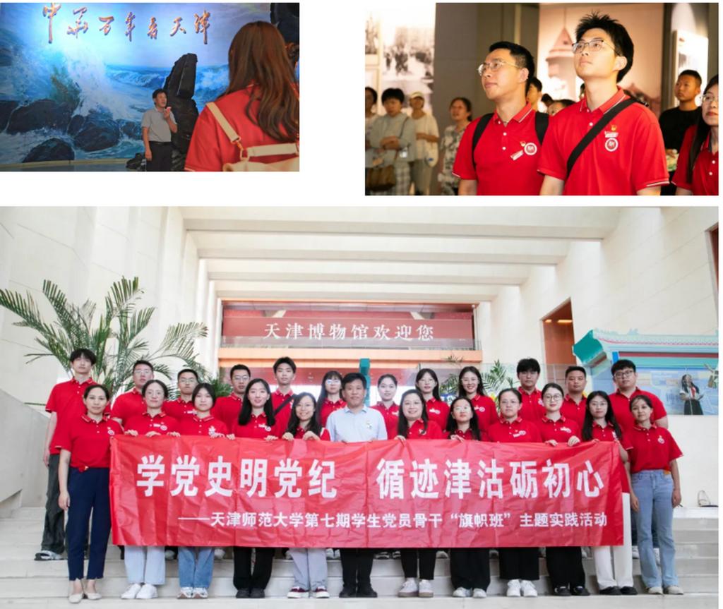 “为何说‘中华百年看天津’?”“在中国共产党百余年光荣历史和伟大征程中,津沽大地留下了怎样的奋斗印记?”一场场别开生面、引人入胜的“情景式”现场思政课,分别在天津博物馆、海河上的天津红色记忆展开讲。我校继续教育学院(基础教育服务中心、对口帮扶管理服务中心)院长、主任洪德全,校友服务与管理中心主任杨琥,历史文化学院2007届校友、天津津旅海河游船股份有限公司副总经理樊福焜受邀担任主讲,带领师生追随津门红色足迹,探寻历史文化脉络,传承红色血脉,激发挺膺担当。