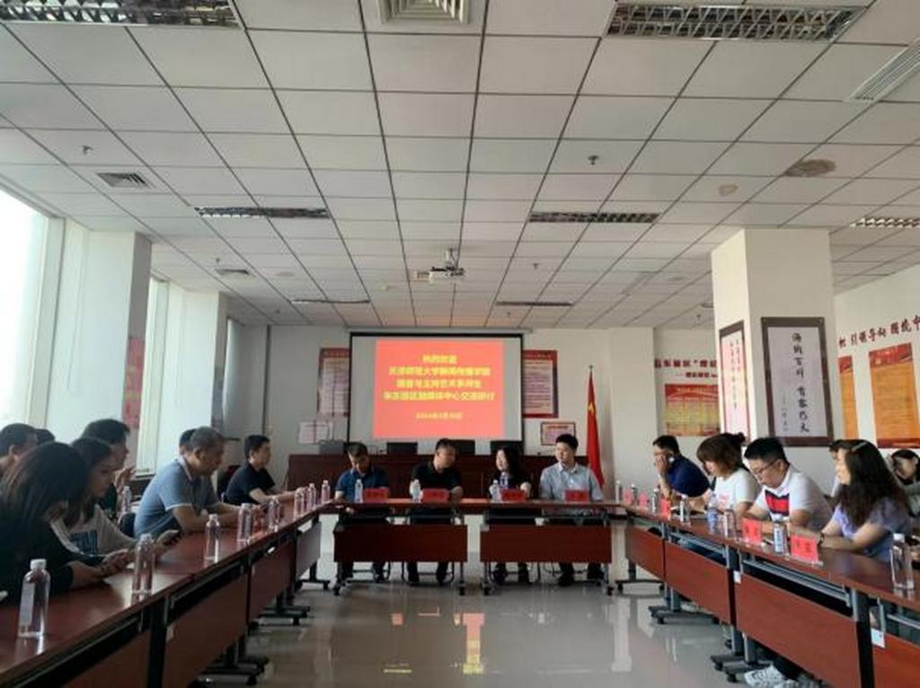 在东丽融媒体中心,东丽区融媒体中心负责人向师生介绍了该中心的发展历程和取得的成就,并带领师生实地参观了东丽区融媒体中心的指挥调度中心、演播室、后期制作室等,深入了解融媒体中心的运作流程和业务开展情况。参观结束后,融媒体中心负责人与播音系师生开展深入的交流研讨,融媒体中心和学院双方达成共识,未来将继续保持良好合作关系,培养优质播音人才。