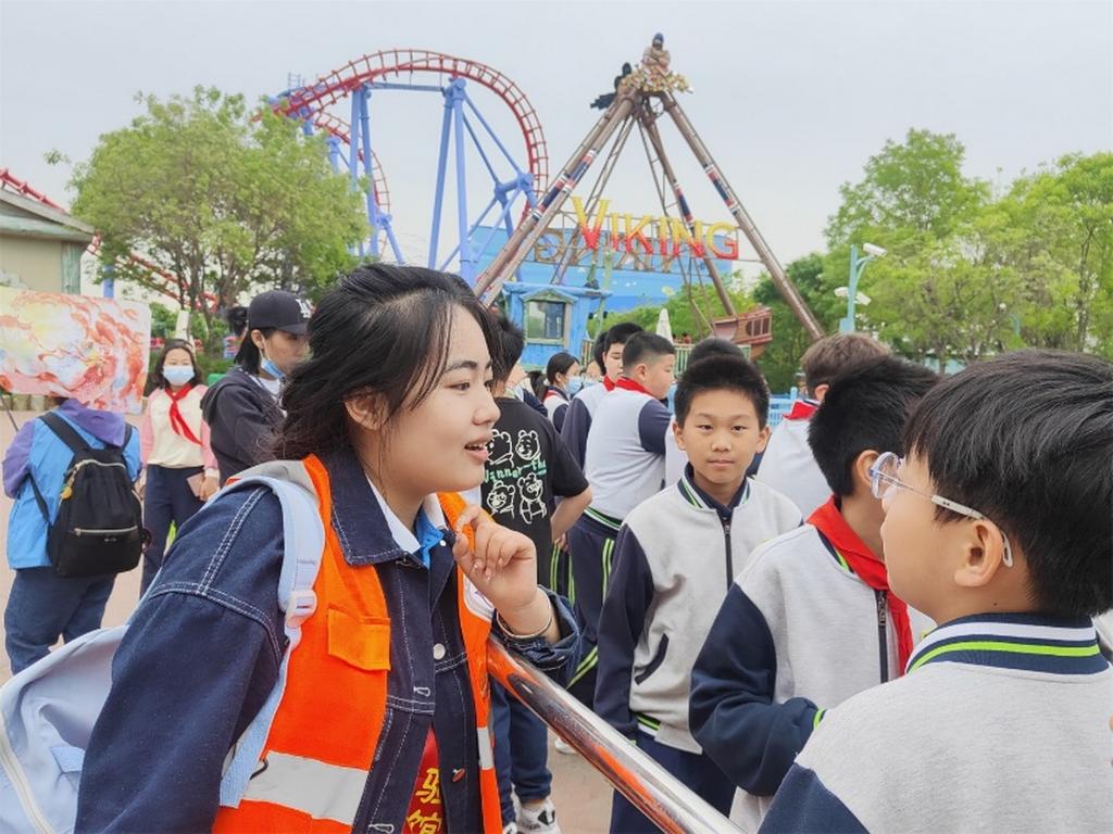 党员们走进场馆,携手大江路小学师生共同走进天津方特欢乐世界。通过体验“东方神韵”、“魔法城堡”、“大闹水晶宫”、“海盗船”、“旋转木马”等游乐设施,讲解游乐项目背后蕴藏的物理原理,使党员们挖掘出更多教学案例素材,引导小学生在游玩中领悟科技变迁,在快乐中发现科学就在身边。