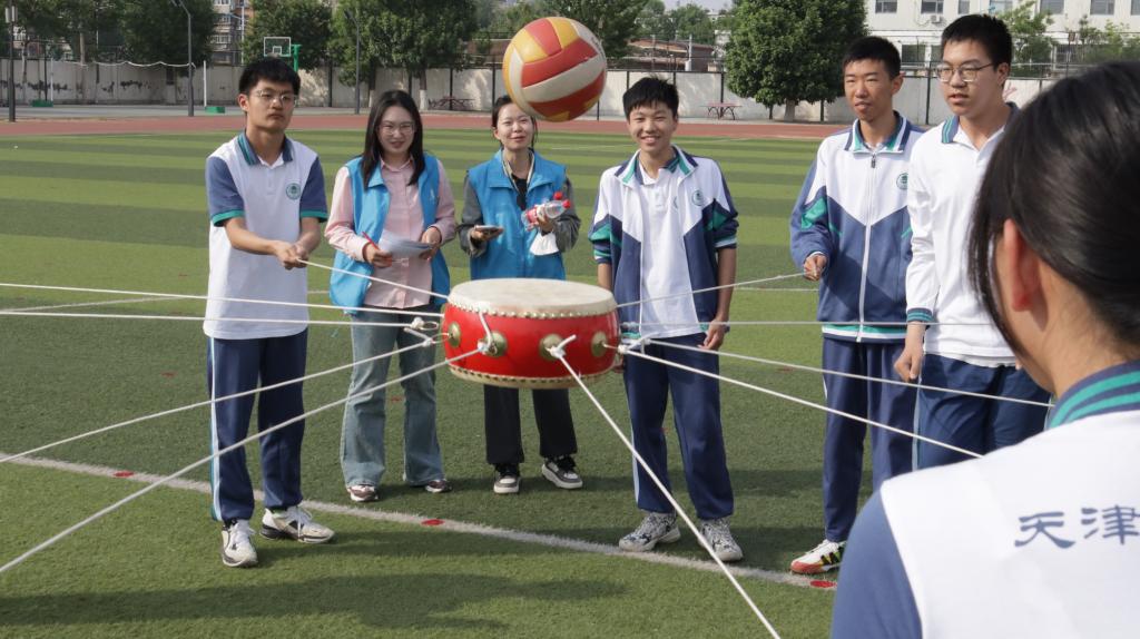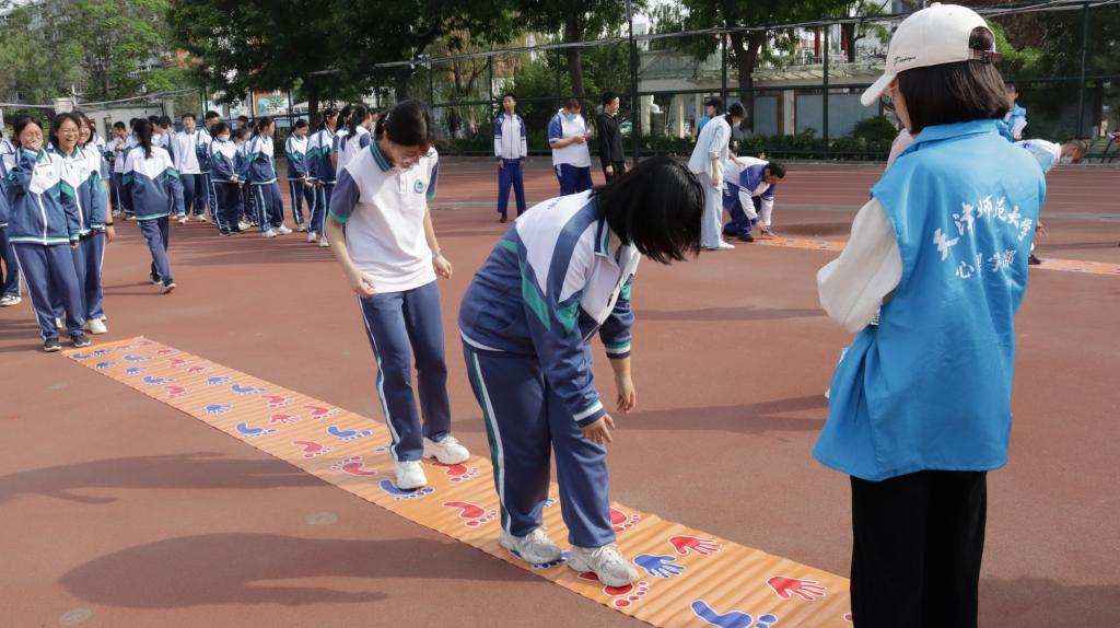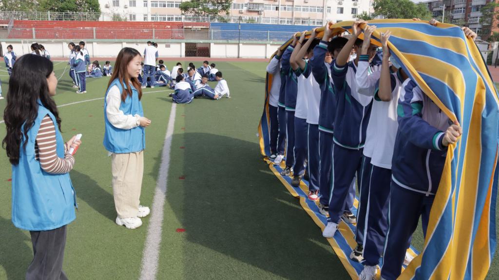 心理学部学生志愿者面向天津市第三中学高一年级8个班开展包含“手脚并用”“车轮滚滚”“彩虹伞颠球”等心运会相关实践活动,提高学生动手实践和团队协作能力,让同学们在动手实践中体验实践的快乐和意义。同时,在活动过程中开展分享交流活动,帮助中学生提高自理、自立能力,了解更多的生活常识,掌握切实的生活技能,让同学们从自己的生活习惯中严格要求自己,注重生活能力和良好卫生习惯培养。