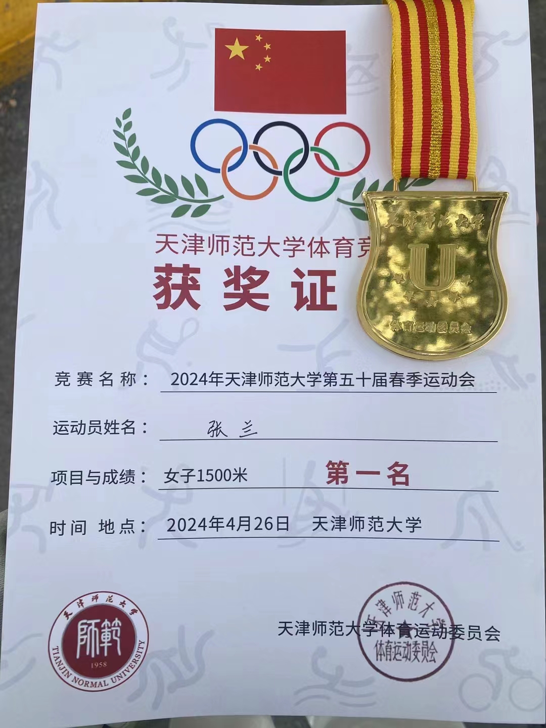这位来自“天府之国”的“川妹子”,很早之前便与“跑步”结缘,在日复一日、年复一年的训练、比赛中,她逐渐地找到了青春的新方向。张兰所读专业在平日里学习任务重、课堂要求高,但她用热爱和坚持找到了两者间的平衡,在不耽误学业的前提下,积极参与校内外竞赛项目,多次参加天津市田径比赛等赛项,在赛场上与优秀选手一同交流,总结经验,反复训练,不断取得突破。2023年她如愿获得了第十三届校园马拉松女子组冠军,此前,她代表学校参加了中华人民共和国第一届学生(青年)运动会,虽然没有拿到名次,但在5000米和10000米项目中达到了二级运动员水平,顺利获得了国家二级运动员证书。对张兰来说,从0到1的突破是激励她继续向前奔跑的最好动力。