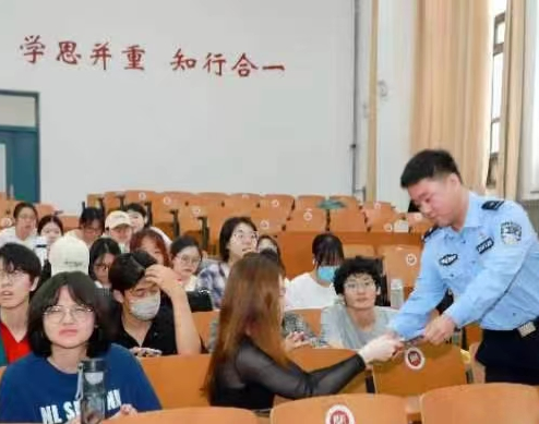 任晓萌以“反诈宣传进校园、护航青春伴成长”为题作宣讲,结合电信诈骗真实案例讲解和分析电信诈骗的常见形式和手段,为同学们普及了识别和防范电信诈骗的小妙招。讲座过程中,同学们积极参与有奖问答,警官为回答正确的同学们赠送了精美的小礼物。通过寓教于乐的方式提醒大家要时刻保持警惕,提高安全防范意识。