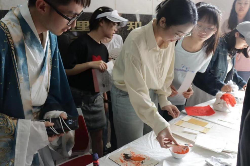 为加强古籍宣传保护,让古籍“活”起来,让古籍蕴含的优秀传统文化和历史底蕴在校园得到深层传播,晒书节在“晒技艺”的环节还设计了“古籍拂尘”“集字板印”“拓古传今”等丰富多彩的体验活动。