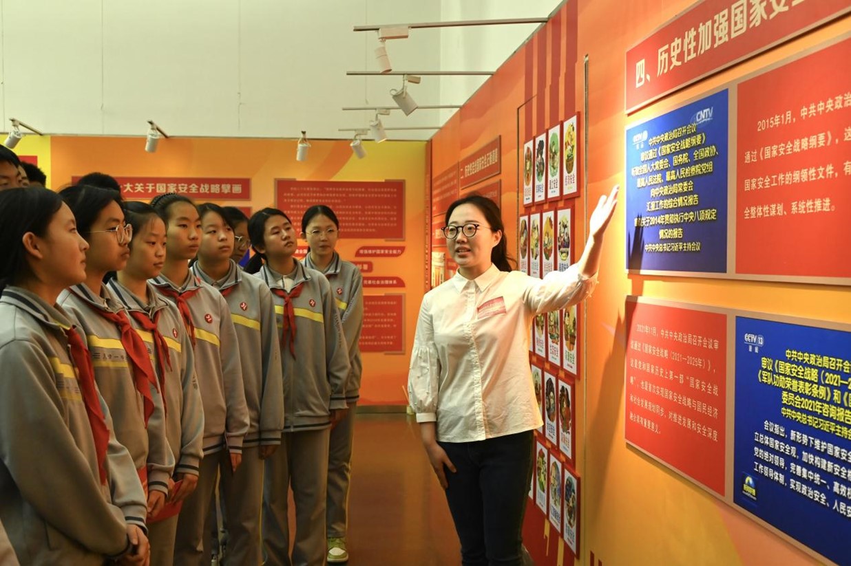 马克思主义学院消息(通讯员 金明昊)4月15日是第九个全民国家安全教育日。为深入学习宣传贯彻总体国家安全观,全面展现新时代国家安全事业新发展、新气象,充分展示我市维护和塑造国家安全的生动实践和丰硕成果,4月8日上午,“奋进新时代 护航新征程”天津市国家安全主题成就展在天津图书馆开幕。我校马克思主义学院学生理论宣讲团承担本次展览的志愿讲解服务。