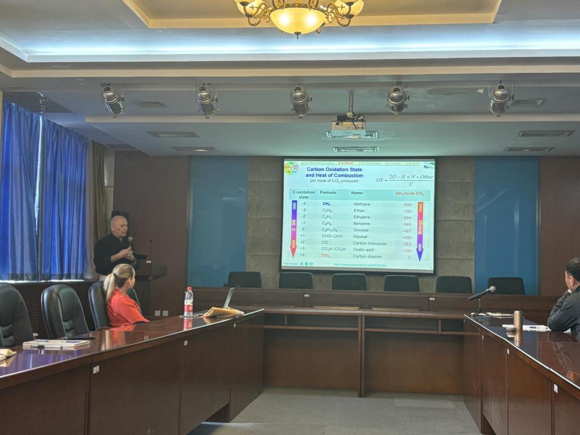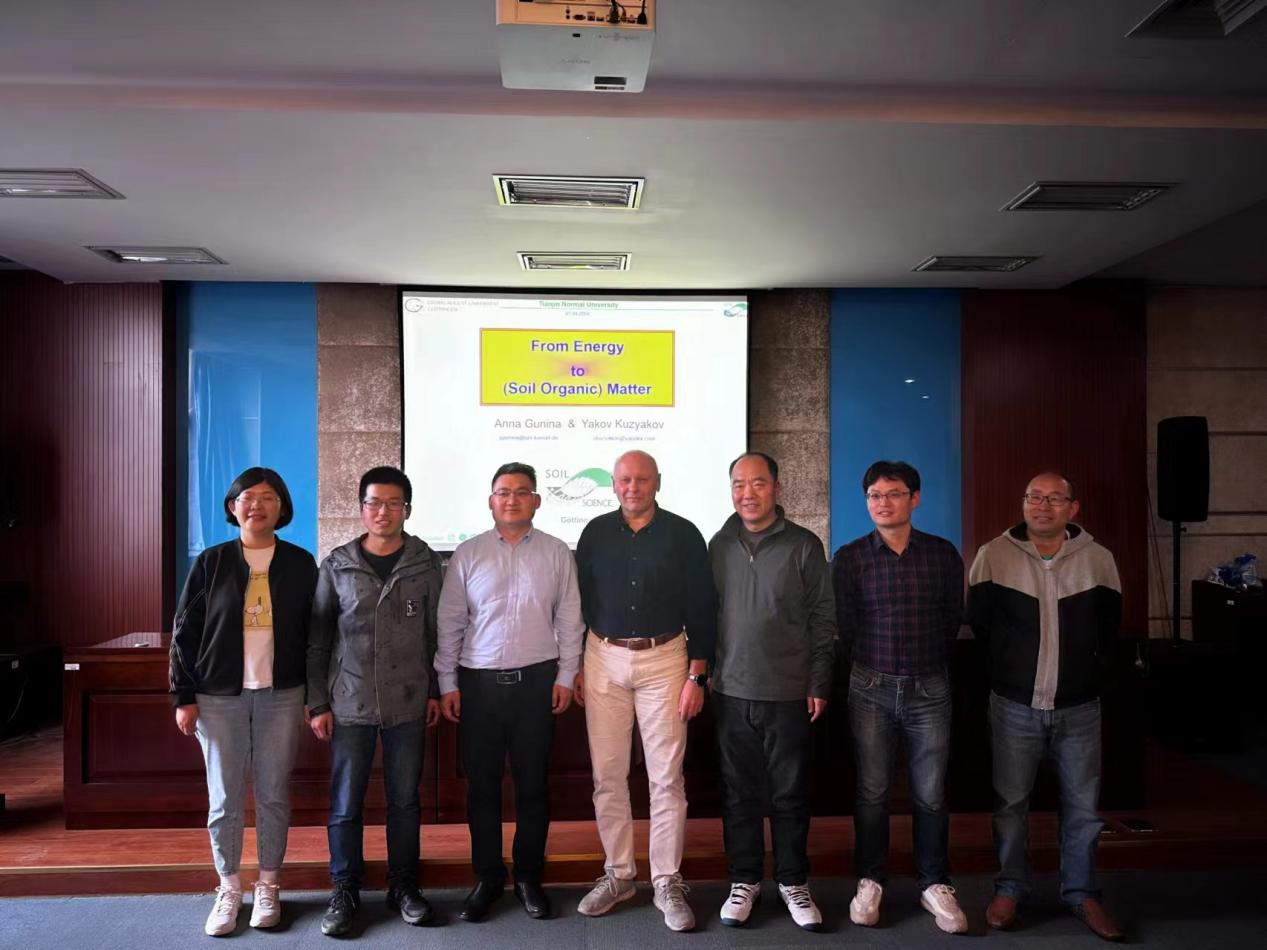 Yakov Kuzyakov教授以《From energy to (soil organic)matter》为题进行学术讲座,解析了微生物能量利用效率(Energy Use Efficiency, EUE)与碳利用效率(Carbon Use Efficiency, CUE)之间的关系,阐述了微生物利用天然有机质的主要目的是获取能量而非碳源的新观点,并以此加深理解沉积物/土壤有机质的形成与稳定。期间,Yakov Kuzyakov教授与我校师生开展了深入交流研讨,为学生答疑解惑。