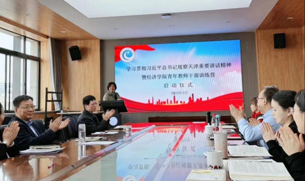 经济学院消息(通讯员 刘洋)3月18日,经济学院“学习贯彻习近平总书记视察天津重要讲话精神暨青年干部教师训练营”启动仪式在兴文楼A324举办。学院党委书记郭旭,党委副书记、院长吕景春,党委副书记、纪委书记王丽娟及学院40岁以下青年干部教师参加。启动仪式由副院长唐诗华主持。