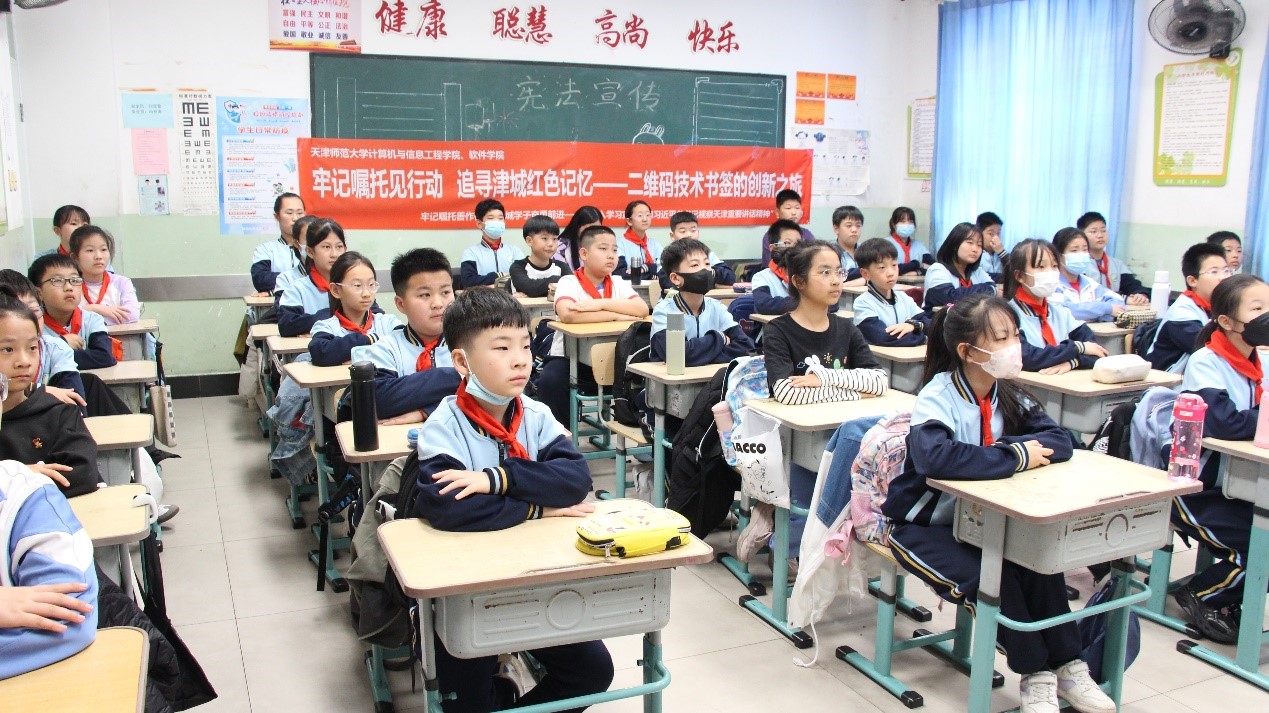 在“牢记嘱托见行动 追寻津城红色记忆——二维码技术书签的创新之旅”科普思政实践课程中,实践团成员带领学生们以天津各大红色纪念馆为主题,通过手绘和拼贴的方式,制作带有红色革命纪念馆介绍二维码的书签。实践团成员扫描二维码,将各大红色革命纪念馆中革命先辈的伟大事迹呈现给学生们,在使学生们领略奇妙的二维码技术的同时传承红色基因,赓续精神血脉。