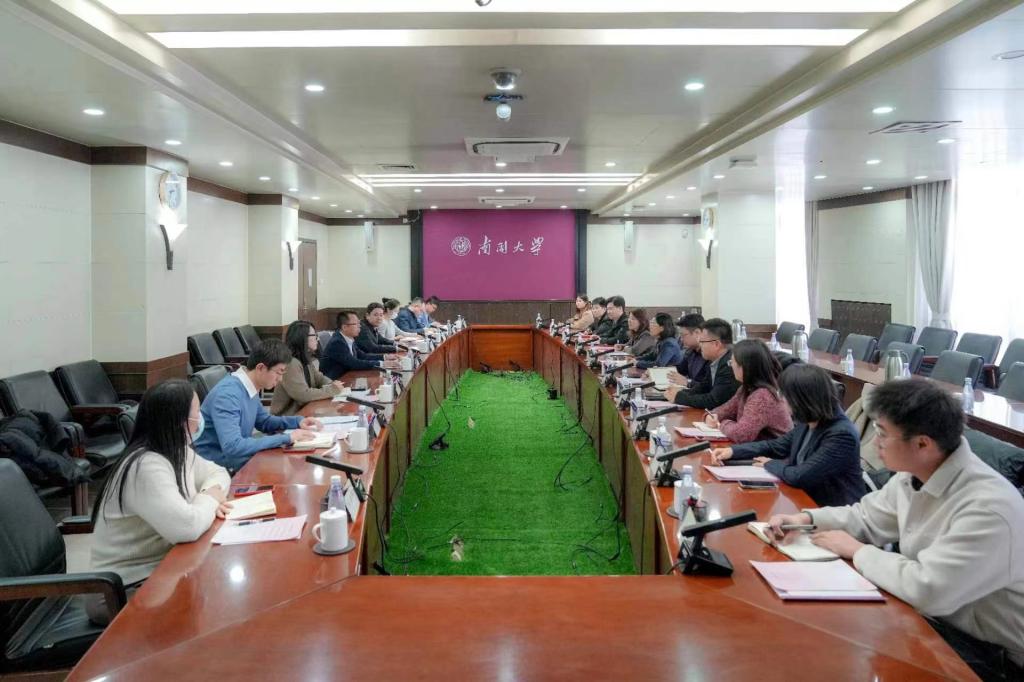 3月7日下午,学校办公室党支部一行10人来到南开大学八里台校区,与南开大学学校办公室开展座谈交流。南开大学党委常委、学校办公室主任于海出席座谈会。于海对学校办公室一行来访表示欢迎,他详细介绍了南开大学的历史发展及学校办公室的基本情况,并围绕“完善落实两会议事规则制度、优化议事协调运行机制、提升接待服务工作质效”等内容分享了工作经验。双方结合具体工作进行了深入交流,并就工作中的难点、堵点和共性问题展开了讨论。座谈会上,党员同志们深受启发、收获丰硕,活动现场气氛热烈。会后,学校办公室一行参观了南开大学品牌文化店。