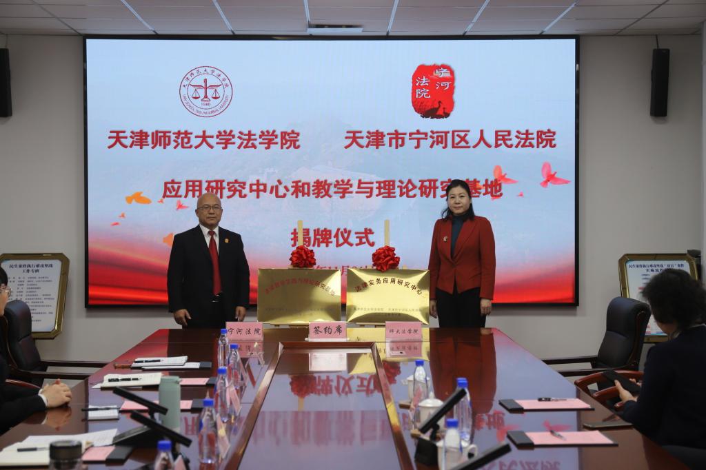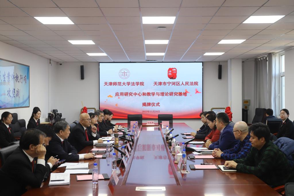 法学院消息(通讯员 王欣)近日,法学院与宁河区人民法院合作共建“法律实务应用研究中心”“法学教学实践与理论研究基地”签约揭牌仪式在宁河区人民法院举行。宁河区人民法院党组书记、院长何朝晖,党组副书记、副院长夏维娜,法学院党委书记何璐,党委副书记、院长郝磊及领导班子全体成员等出席仪式。宁河区人民法院相关部门负责同志、干警代表及法学院教科办等负责同志参加。