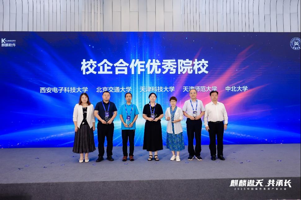 本站讯(通讯员 梁月)近日,以“共承长·聚生态·育英才”为主题的2025操作系统与网信人才生态大会在北京隆重举行。本次大会由麒麟软件公司主办,汇聚了工业和信息化部、教育部等相关部委领导,以及来自全国顶尖高校、科研机构和产业链上下游企业的200余名专家学者,共同擘画人工智能时代下操作系统与网信人才生态建设的新蓝图。我校电子与通信工程学院(人工智能学院)作为麒麟软件的重要战略合作伙伴应邀出席活动。大会上,我校电子与通信工程学院(人工智能学院)荣获“校企合作优秀院校”称号,教师王毅荣获“校企合作突出贡献教师”称号。