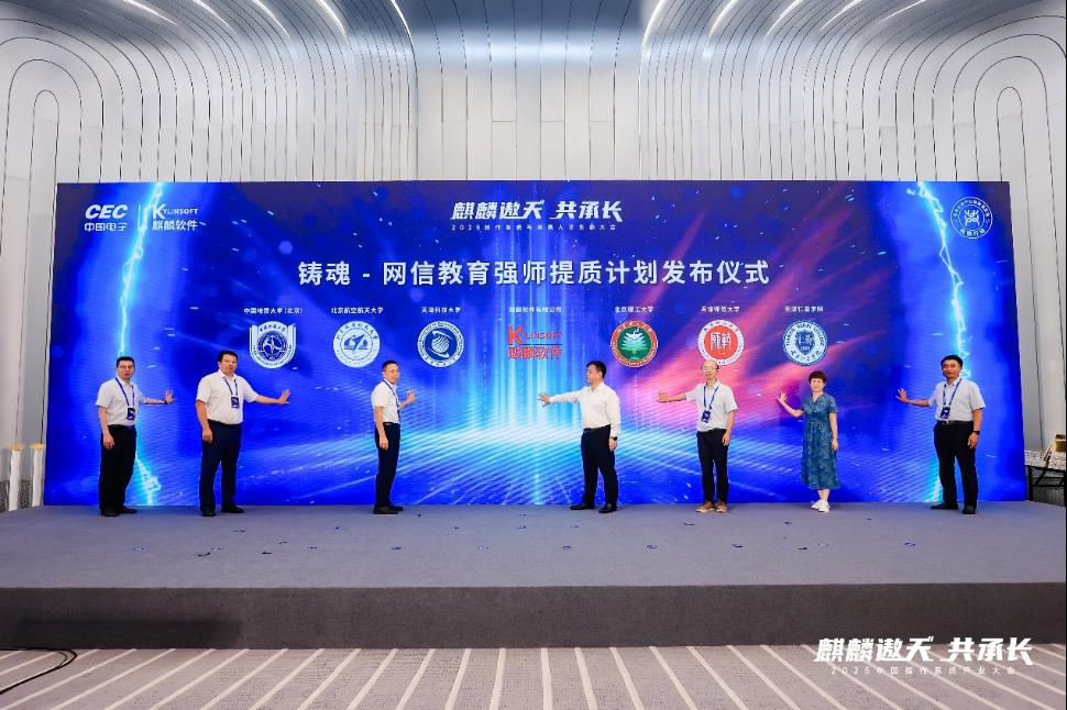 大会期间举行了“铸魂-网信教育强师提质计划”的重磅发布仪式。作为该计划的重要参与单位之一,我校将依托此平台,进一步加强与麒麟软件等行业领军企业的合作,聚焦操作系统“根技术”人才培养,大力弘扬教育家精神,持续赋能学院教师的专业教学能力与数字素养提升,打造一支高水平的网信领域“金师”队伍。