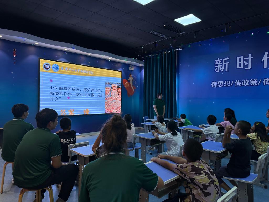 带着从津门汲取的红色力量、对新疆历史文化的深度认知、对产业发展的深入思考以及对胡杨精神的深切感悟,实践团将理论认知与实践热情下沉至普惠乡社区,精心打造“童心课堂”,以趣味推普点燃儿童学习热情。活动寓教于乐,显著提升儿童普通话能力,深植爱国爱疆、求知求真的种子,为乡村培育未来希望。
